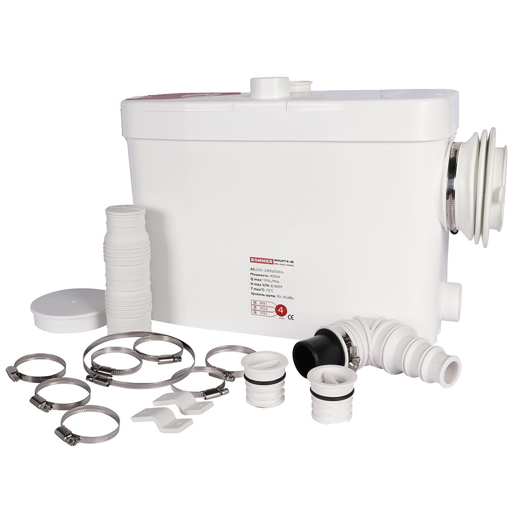 —Канализационная насосная установка ROMMER BIOLIFT R-4S, выход сбоку 1*100 мм/3*40 мм