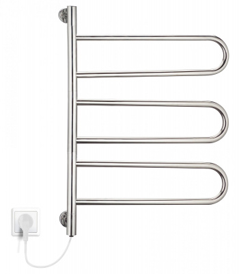 Электрический полотенцесушитель с поворотными секциями. • Габаритные размеры (ШхВ): 60x90 см • Нагревательный элемент: греющий кабель. • Мощность: 100 Вт. • Масса: 4,2 кг • Гарантия: 2 года • Электрический полотенцесушитель не зависит от отопительных сезонов, наличия ГВС и температуры воды - его можно устанавливать в любом удобном и безопасном месте, использовать в любое время года и суток. • Греющий электрический кабель внутри корпуса обеспечивает равномерный и быстрый прогрев поверхности без лишних энергозатрат, экономя электроэнергию. • Предельно простая конструкция безжидкостного полотенцесушителя обеспечивает его высокую надёжность и долгий срок эксплуатации, исключены протечки и замерзание теплоносителя. • Греющий кабель внутри полотенцесушителя имеет надёжную многослойную изоляцию, а отсутствие жидкого теплоносителя также обеспечивает высокий уровень электробезопасности. • Безопасная температура нагрева (до 55°С) исключает любую возможность получения ожогов и позволяет монтировать полотенцесушитель на любых поверхностях. • Стабильная температура нагрева 50±5°С обеспечивает качественную сушку вещей и их сохранность. • Кроме стандартного подключения с помощью кабель-вилки возможна и скрытая проводка кабеля через опорный кронштейн в стену. • На корпусе полотенцесушителя установлен компактный выключатель. • Монтаж предельно прост, в комплект включено всё необходимое.