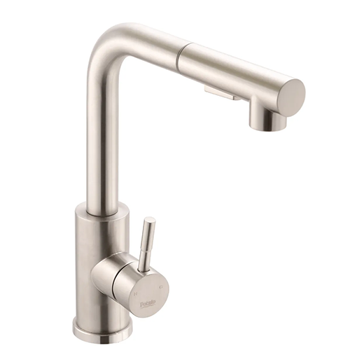 Смеситель для кухни с выдвижной лейкой Potato P0047S в элегантном сатиновом покрытии — это идеальное решение для современных кухонь, где стиль и функциональность идут рука об руку. Этот смеситель не только привлекает внимание своим утонченным дизайном, но и обеспечивает максимальное удобство в использовании. Выдвижная лейка с двумя функциями позволяет легко переключаться между струей для мытья посуды и распылением для ополаскивания овощей и фруктов, что делает процесс приготовления пищи более комфортным и быстрым. Крепление смесителя осуществляется с помощью надежной гайки, что обеспечивает его стабильность и долговечность. Картридж с керамическими элементами диаметром 35 мм гарантирует плавное и точное регулирование потока воды, а также предотвращает протечки, что является важным аспектом для любой кухни. Сатиновое покрытие не только придает смесителю стильный вид, но и облегчает уход за ним, так как на нем менее заметны отпечатки пальцев и загрязнения. Это делает смеситель Potato P0047S не только красивым, но и практичным выбором для вашей кухни. Благодаря высокому качеству материалов и продуманному дизайну, этот смеситель станет надежным помощником в вашем доме на долгие годы. Выбирая Potato P0047S, вы получаете не просто смеситель, а целый комплекс удобства и стиля, который преобразит вашу кухню и сделает процесс готовки более приятным.