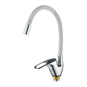 Смеситель для кухни RAINSBERG R3193F-5 одноруч, с гибким силикон изливом 47см, гайка, серый [1/10]
