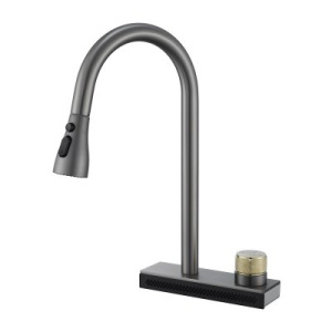 Смеситель для кухни OUTE T708Yодноруч, водопад, с выдвижной лейкой, 3 режима, нерж, графит [1/10]