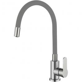 Смеситель для кухни OUTE T40193B-5 одноруч, с высоким изливом 21 см, гайка, серый, нерж [1/10]