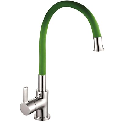 Смеситель для кухни OUTE T9113B-7 одноруч, с гибким изливом, гайка, нерж, зелен [1/10]