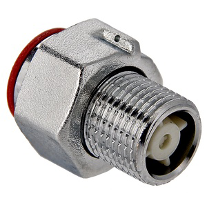(VTr.612.N) Латунный никелированный фитинг со встроенным обратным клапаном. Основное назначение – подключение водосчетчиков. Обеспечивает наличие прямых участков длиной в три условных диаметра до и после расходомера, необходимых для его точной работы. Накидная гайка имеет отверстие для пломбировки. Резьба со стороны без гайки: наружная, трубная цилиндрическая по ГОСТу 6357 (ISO 228, EN 10226).